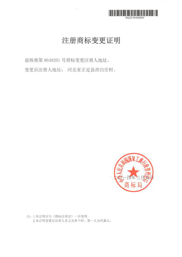 注冊商標(biāo)變更證明